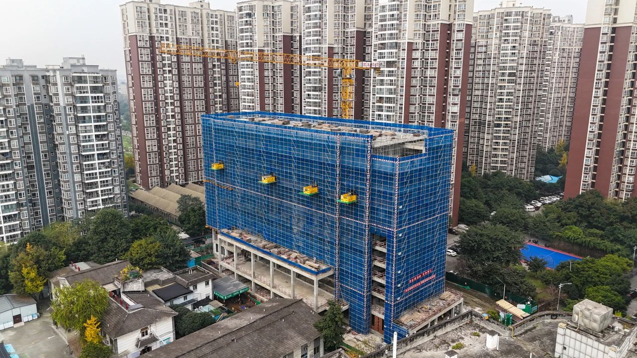 施工过程中,项目部直面施工现场场地狭窄、材料运输困难、安装工序复杂等难题,秉承“规范 精细 高效 卓越”的管理理念,紧密合作,高效沟通,确保项目顺利推进。目前,项目已完成总工程量的45%,主体结构顺利封顶,二次结构也已圆满完成,现已正式进入装饰装修阶段,力争在2025年11月全面完工。