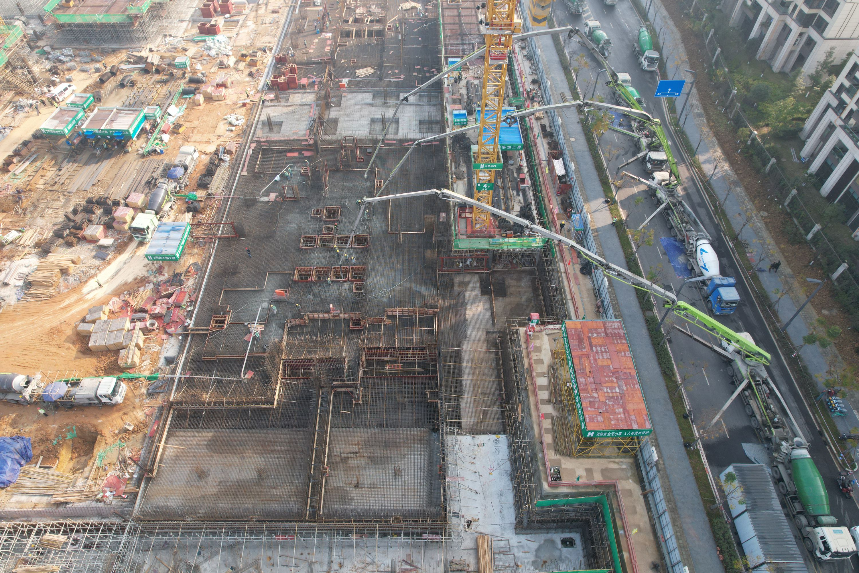 元旦新岁启,奋斗正当时!五泵齐发,连续浇筑,历经37小时,龙潭寺TOD三期D、E地块项目顺利完成了5540m³首块(E-5号楼)大体积筏板混凝土浇筑,这也标志着项目高层建设正式进入主体结构施工阶段!