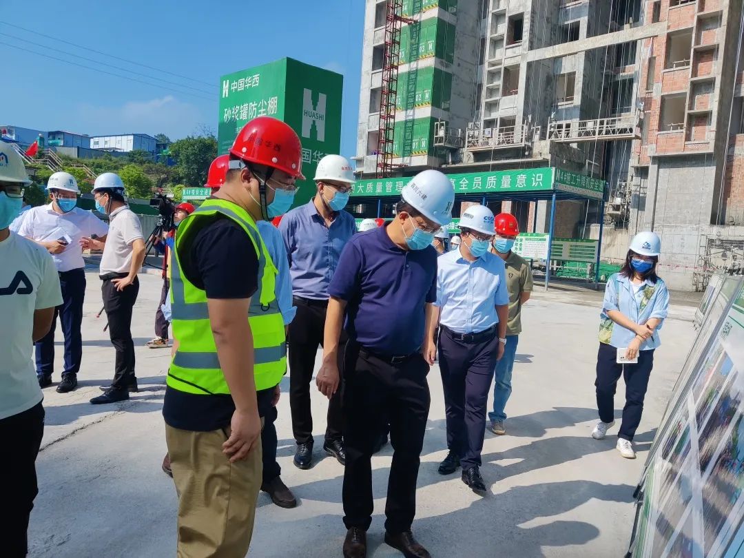 余长明、钟渝一行深入项目施工现场,听取了项目部关于安全、质量、进度、防疫等方面的工作汇报,重点对现场安全生产、文明施工、疫情防控落实等情况进行了检查,并参观了项目样板间。