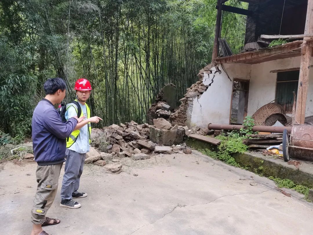 在当地村委书记带领下,何林与队友挨家挨户排查、记录、登记并留下影像资料,根据房屋的具体情况,对可以使用的房屋张贴绿码,暂停使用的房屋张贴黄码,禁止使用的房屋张贴红码。他们克服了排查房屋地点分散、食宿艰难等困难,两天内,完成了和平村、田湾河村47户村民的房屋安全隐患排查。