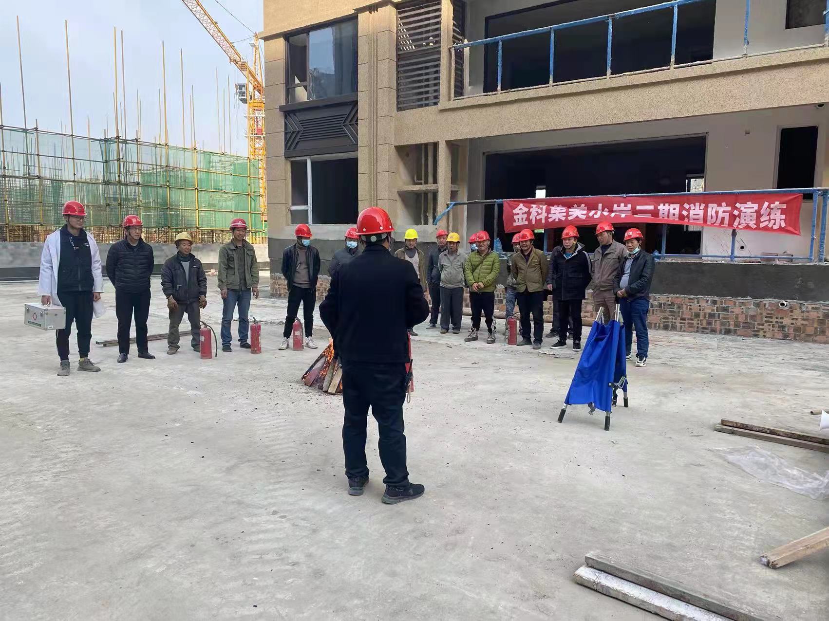11月23日11时,在现场监理单位的协助下,广汉金科集美水岸三期项目组织项目管理人员及施工作业人员开展了安全培训及消防演练。