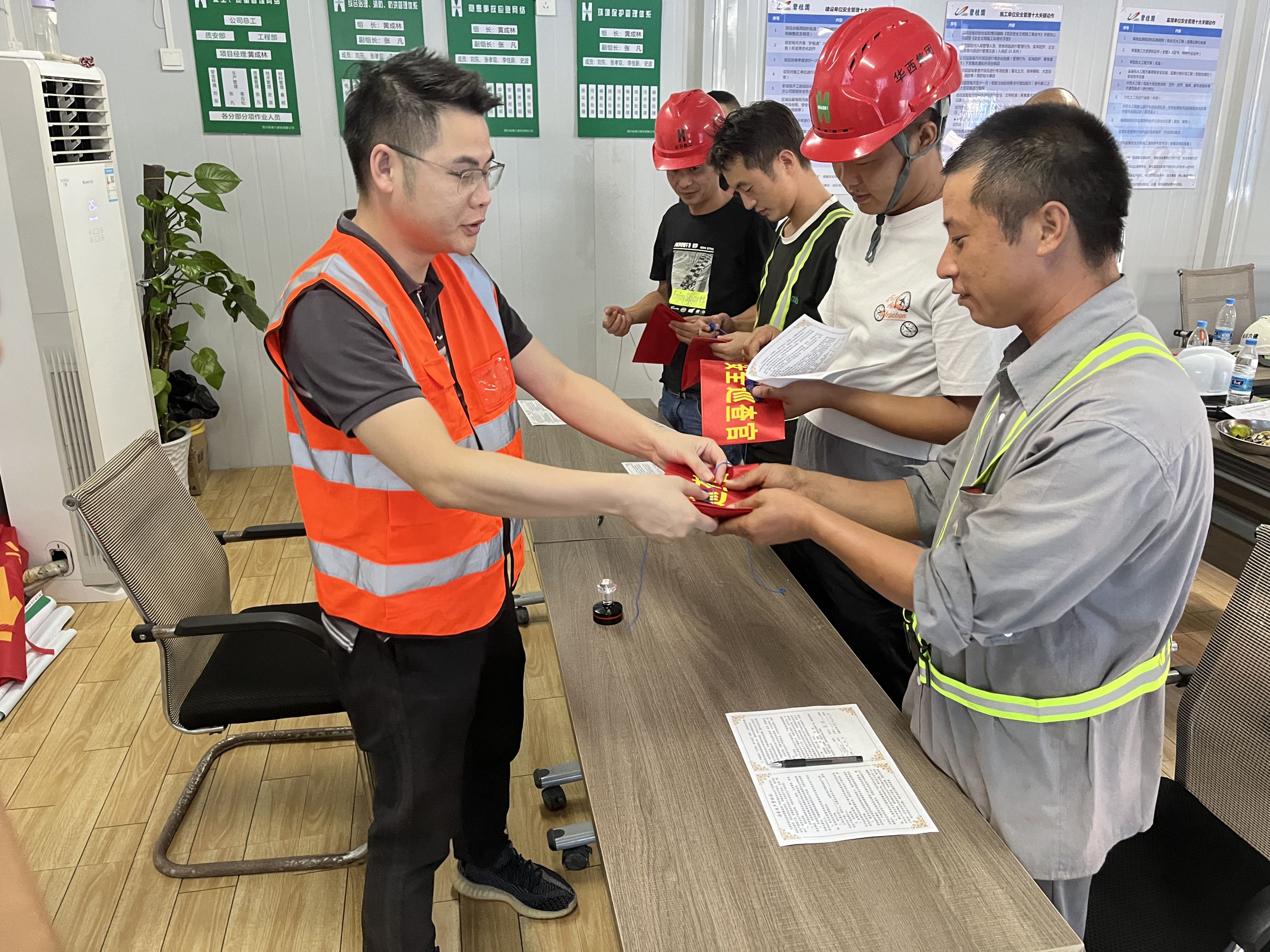 会议学习了《安全生产法》,观看了案例视频,甲方,总包,工友三方交流了想法,工友们积极发言表达了各个班组立场的建议,让以后的安全生产管理工作有了更明确的方向和重点。会上项目部对在安全生产月中表现突出、工作积极的三名同事进行了表扬和嘉奖。同时,各班组表现优秀的工友进行了加入安全志愿官的宣誓,并和甲方签订了《安全生产责任状》。最后开展慰问工人家属活动,通过视频方式跟工人家属进行了交流,对家属在家照顾家的辛苦予以了感谢,也希望家属们能给予更多的关心和支持,因为亲友的寄语是最好的宣贯,是最好的关怀。