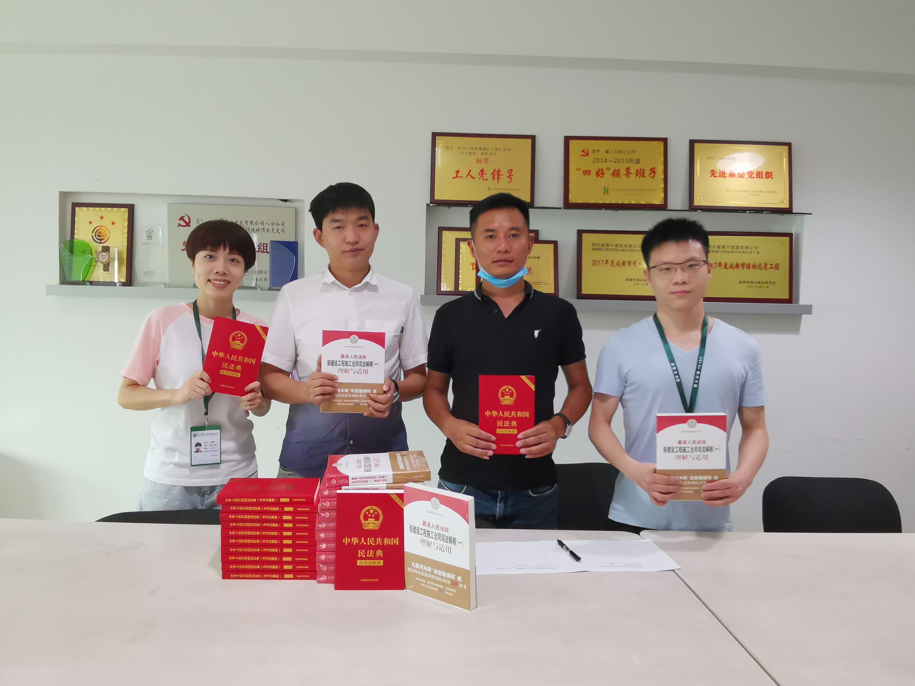 八分公司法务部门在走访基层项目中发现,项目部在处理一些法律事务时因对建筑领域的专项法律条款不甚了解而存有疑惑。分公司立足基层项目需求,秉承为基层群众们办实事的服务理念,特向基层项目赠送了《民法典》和《新建工合同司法解释一》。