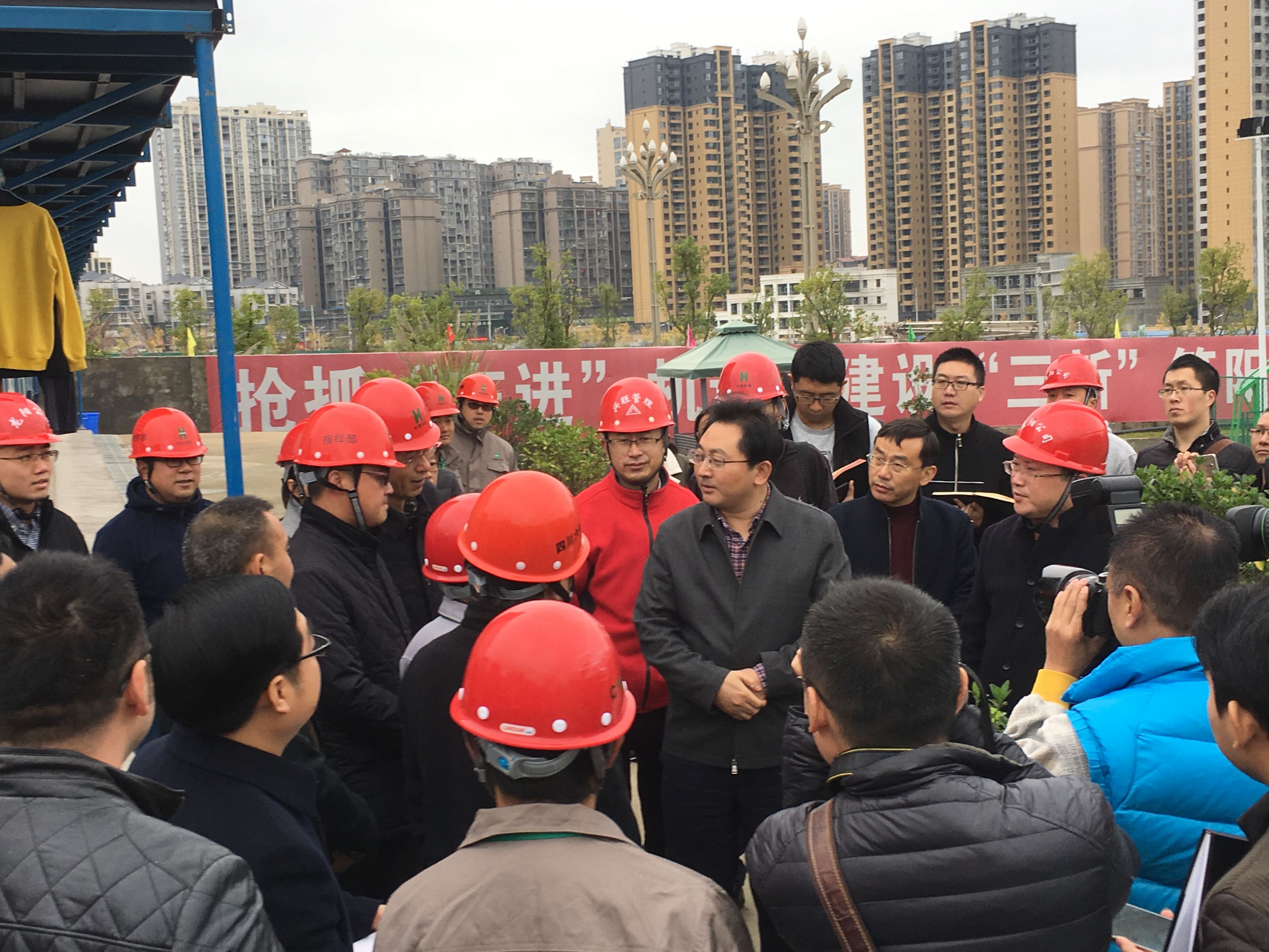 11月16日,简阳市市委书记赵春淦一行到由六公司承建的东来印象项目部开展项目调研工作。
