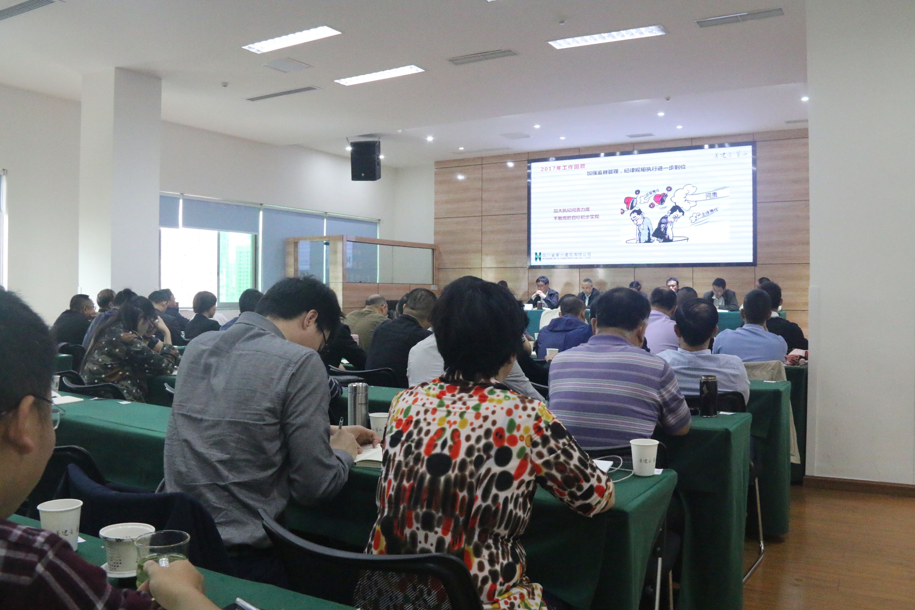 4月24日,公司召开了2018年党风廉洁建设工作会。会议回顾总结了公司2017年党风廉洁建设工作,对2018年党风廉洁建设工作进行了安排部署。集团公司党委常委、纪委书记杨福林出席会议,公司领导班子全体成员,公司机关各部门负责人、下属各单位班子成员、综合办负责人、项目经理代表,共计99人参加会议,外区单位以视频会议形式参加。
