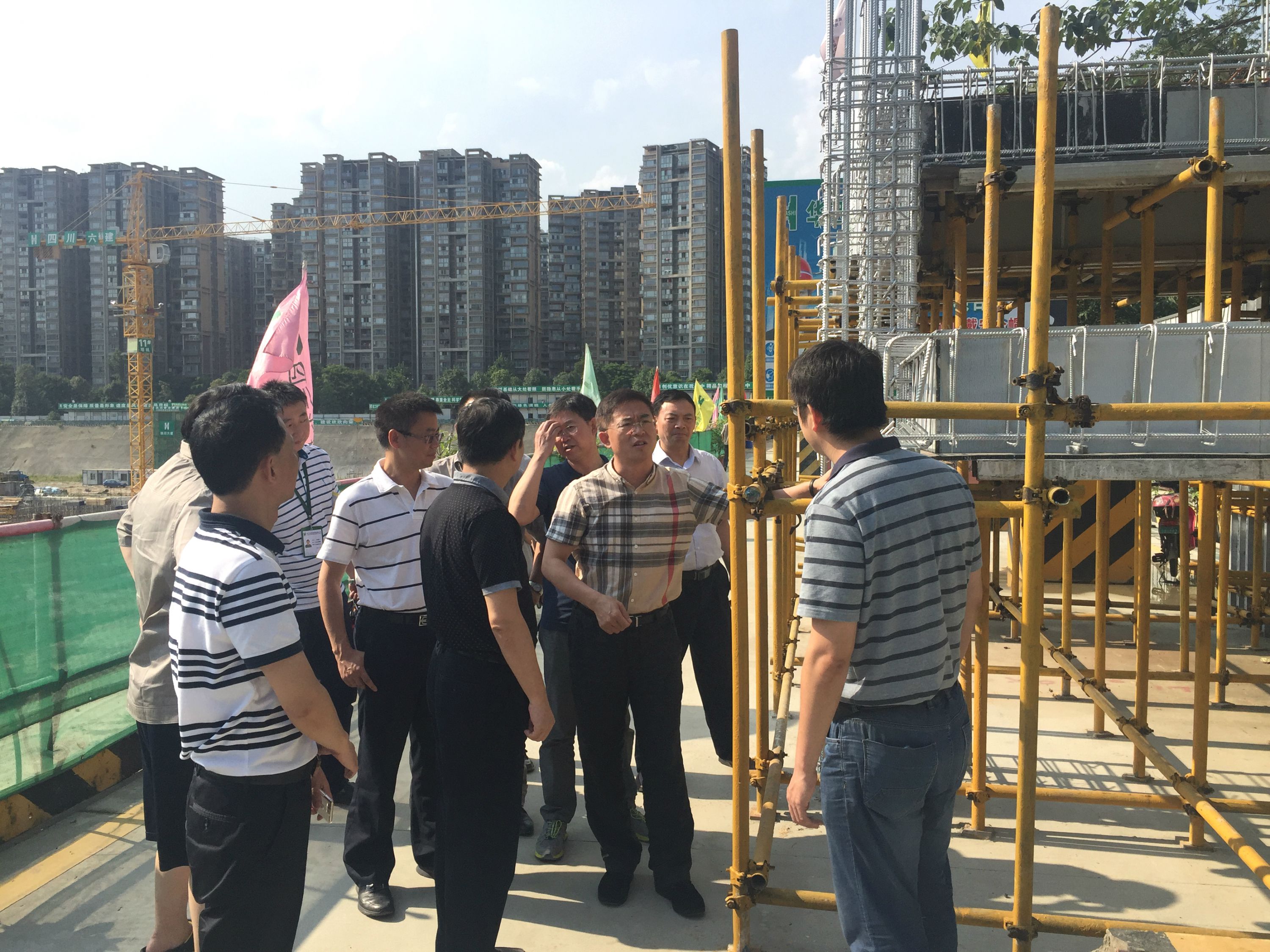 7月12日,集团总经理杨斌一行冒着酷暑到公司成都南城都汇八期项目检查指导工作。公司党委书记、董事长任予锋,总经理陈秀锋,副总经理、总经济师袁玉家,总工程师薛庆及项目管理人员参加了检查。