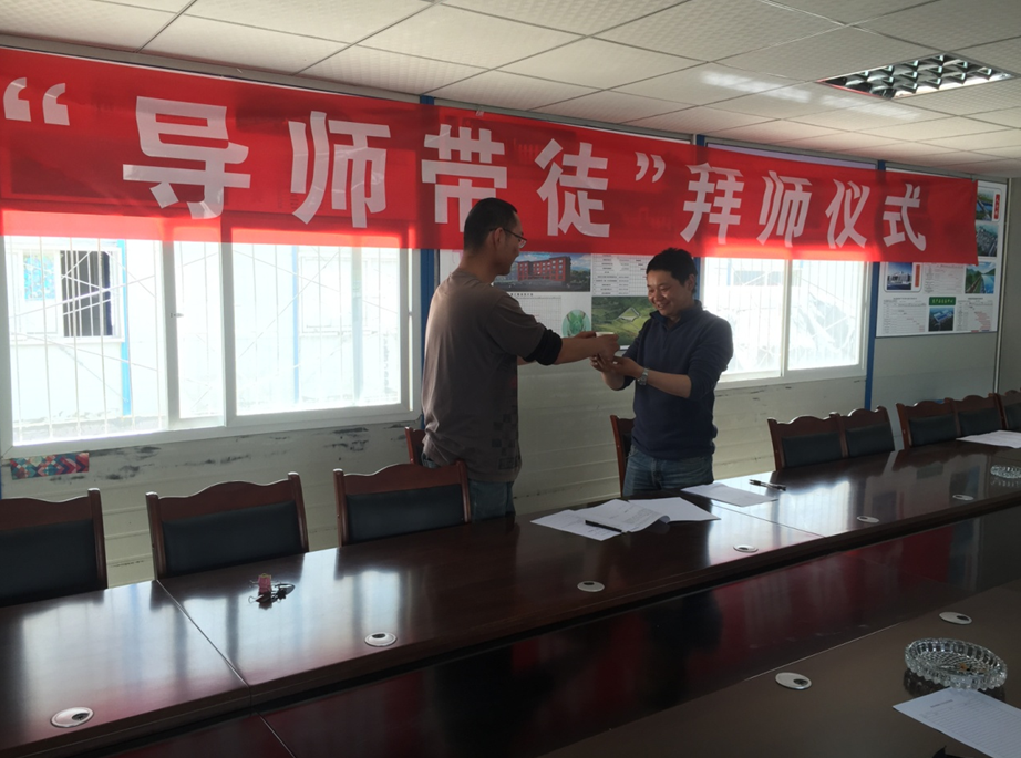 “导师带徒”活动的开展,既能够考验师傅们的功力,也能够进一步的帮助每一位新员工快速的成长。色达项目是个特殊的地方,在这片海拔3800米的高原上,我相信你们每一对师徒都将有一段不同寻常的经历”,在仪式上,项目部党支部书记唐庆向四对师徒说道。