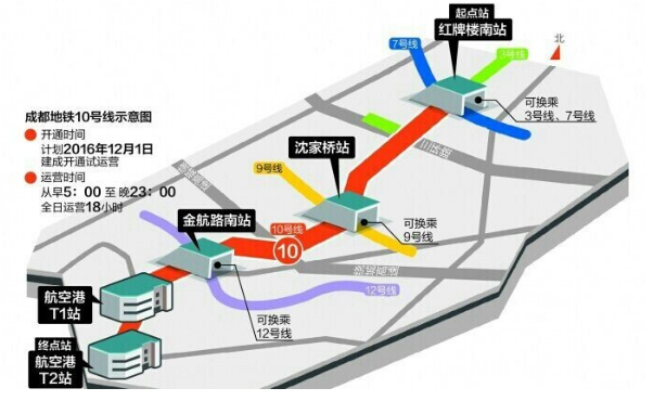 成都市地铁10号线一期工程线路全长10.9km,全部为地下线。车站6座为:太平园、簇锦、华兴、金花、空港一站、空港二站。